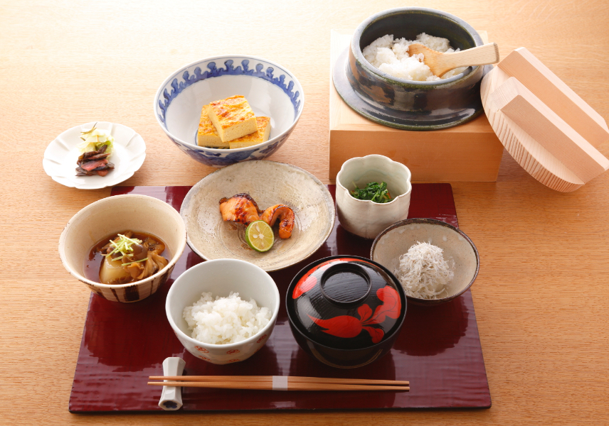 「ミシュランでふたつ星を獲得している石葉は、食も楽しみのひとつです。季節の食材の美味しさを堪能できる、シンプルで洗練された料理の数々。器やしつらいも素晴らしいです。夏の鮑、秋の松茸、冬の間人蟹と、季節の贅沢食材は自分へのご褒美として。石葉の魅力を語るのに欠かせないのが朝ごはん。ご飯のお供がずらりと並ぶ様子はまさに”大人のおままごと”と呼びたくなる楽しさ。炊きたてご飯の美味しさを実感できます」