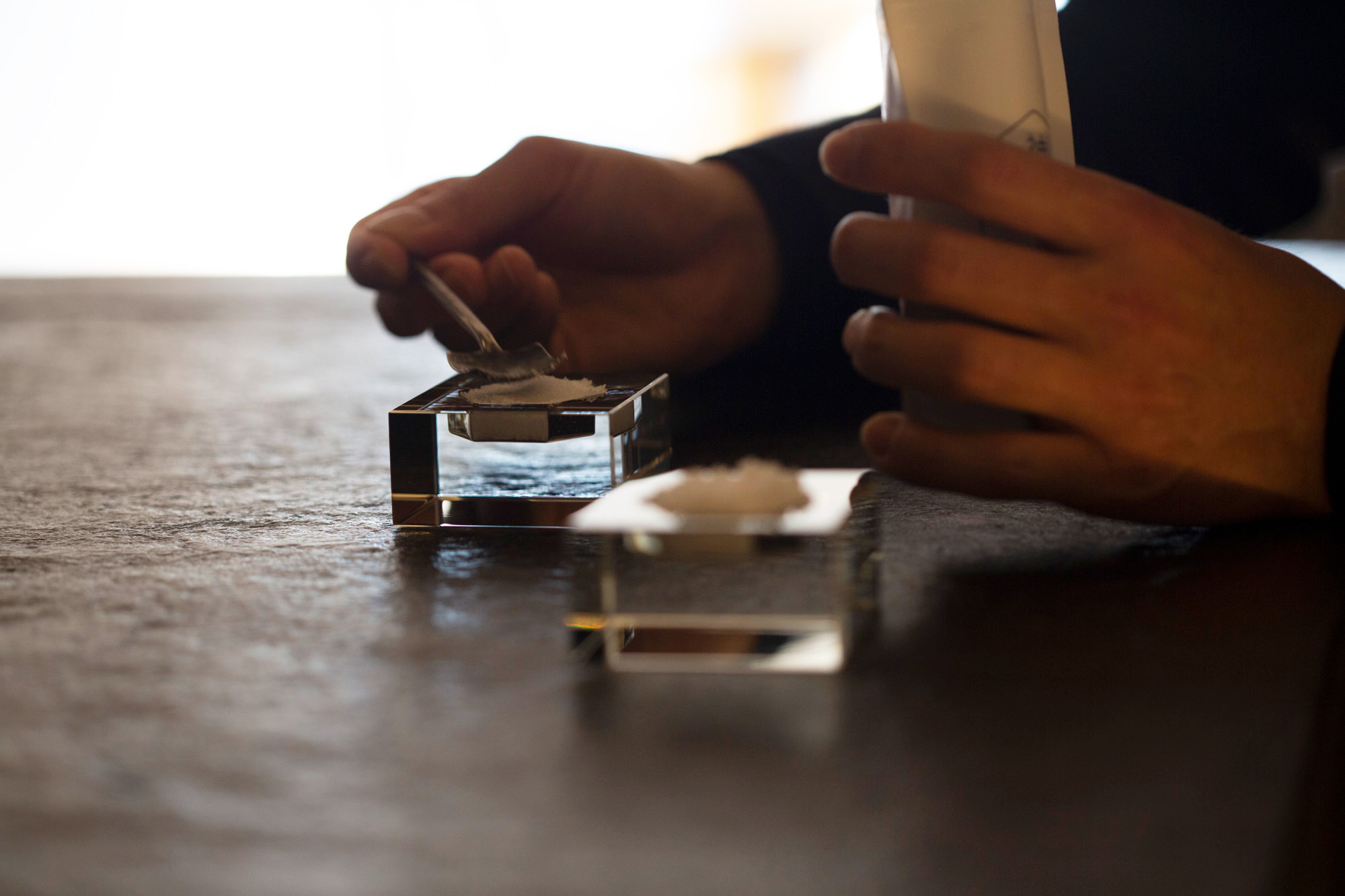「透明感のあるガラスの器はどの場所に置いてもしっくり馴染み、目にした人たちのコミュニケーションを生み出し、塩のエネルギーを感じることができます」