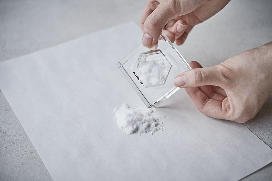 日本古来の風習である「盛り塩」をミニマルなデザインに落とし込んだのが「神ノ潮」です。風水にも知識が深いグエナエル・ニコラ氏が着目したのは、「安定を調和」を意味する六角形と、「浄化や守り」をもたらす塩。