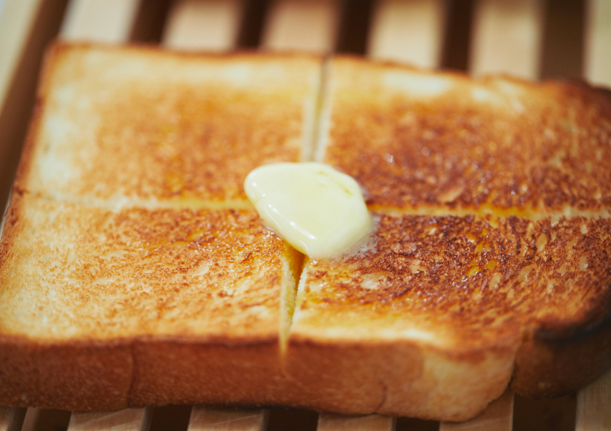 【トーストモード】で3分。ふんわり香る小麦の香りと、溶け込んだバターの芳醇な甘みが贅沢に味わえる感動のバタートーストです。