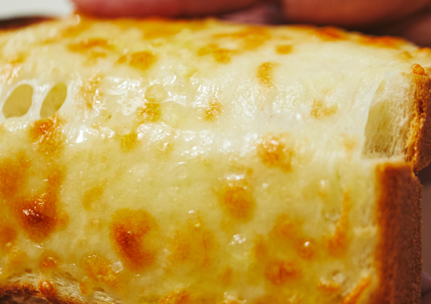 【チーズトーストモード】で4分。スチームの力でチーズの水分と風味をたっぷりと残したまま、細かい温度制御で絶妙な焦げ目をつけます。トロ〜リチーズが食欲をそそります。