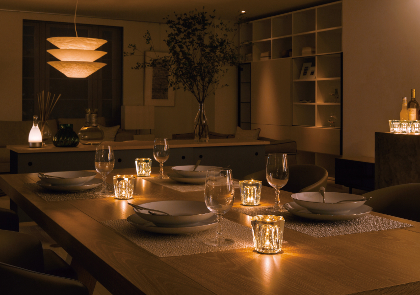防水性能を備えているので、テラスでの使用も可能。空間の雰囲気をぐっと高めてくれます。キャンドルの灯りが使えなかった場面でも活躍してくれるでしょう。