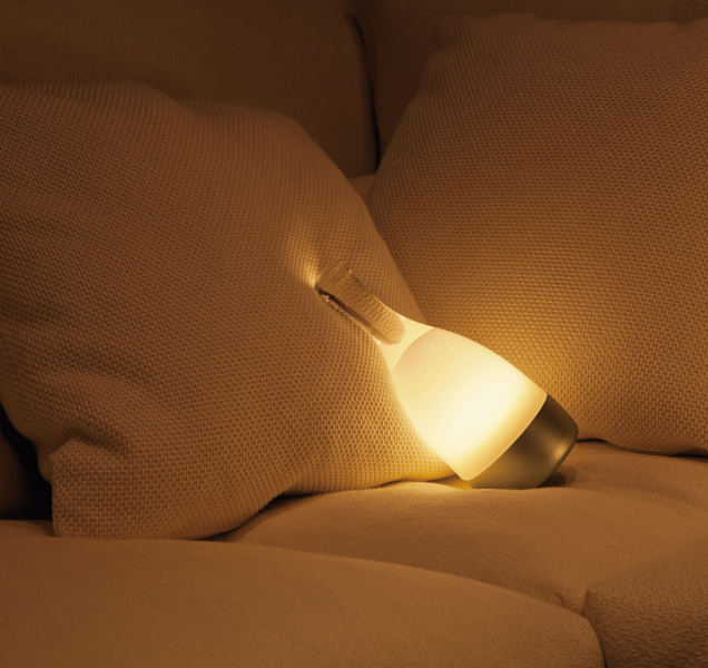 まるでボトルのような姿をした「Bottled」はコードレスでエモーショナルな灯りを再現したランプ。灯りには場を明るくするだけではなく、空間の雰囲気を作り、時には音楽のように気分を高めたり、リラックスさせる力があります。そのために美しいフォルムと高い機能性をロジカルに導き出し、自由にしたのがBottledです。さっと持ち運べるように作られており、ipx6という防水基準を満たしているためテラスや洗面所でも使用できます。