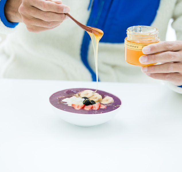 毎朝食べるアサイーヨーグルトにはちみつをとろ〜り。プレーンな無糖ヨーグルトにはちみつで甘さを足します。
