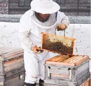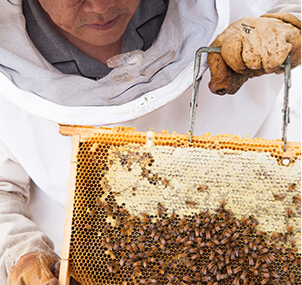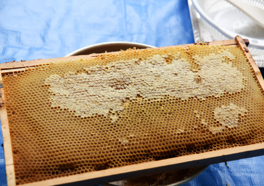 ミツバチははちみつを巣に持って帰ってきたら自分の羽で乾かします。すると、蜂の羽についている花粉や蜂が持っている酵素がはちみつに入りそれが栄養の一部となります。そして自ら完成したと判断した段階で蜂の巣に蓋をします。蓋をする前のはちみつは完成してないはちみつとも言えるかもしれません。すべての蓋が閉まっている状態での採取は不可能ですが、グランハニーは生産者の判断で、蜜が溜まってきて蓋がたくさん閉まってきたと判断したら採取をはじめます。