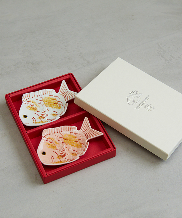 可愛らしい鯛の小皿はお正月や結婚祝い、長寿のお祝い事にも喜ばれそう。由緒ある有田焼の窯元「幸楽窯」さんが手がけています。