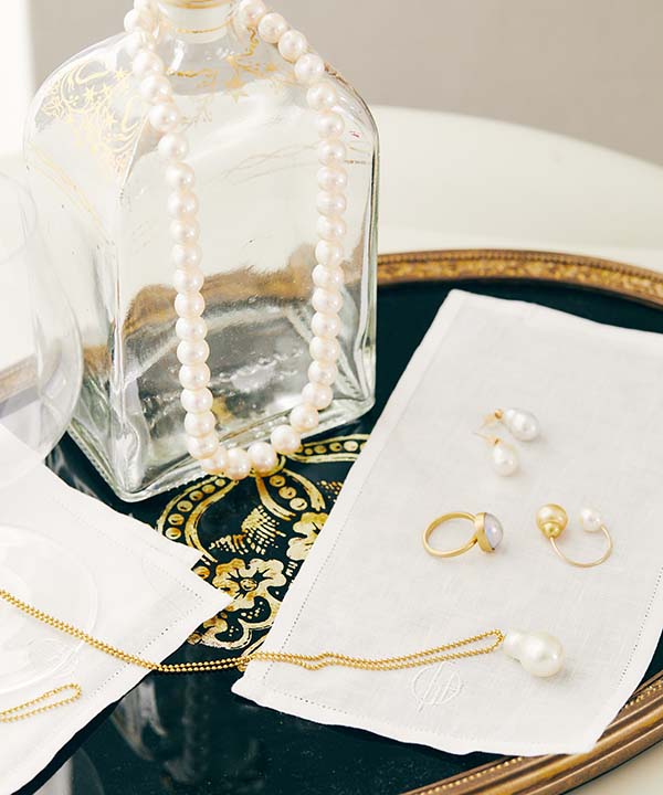 気品のある柔らかい光を放つパール、中でも唯一無二の個性的なフォルムが美しいバロックパールに魅了され「LAWRENCE」を立ち上げたデザイナーの南条千尋さん。「古代からお守りとしても親しまれ、愛されてきたパール。身につけることで自信や強さを与えてくれるような、『自分だけの一粒』との出逢いを楽しんでいただけるブランドでありたいと願っています」。
