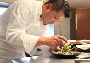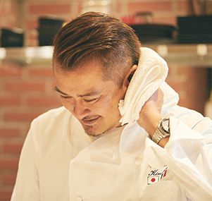 「オー・ギャマン・ド・トキオ」オーナーシェフ。「AUX BACCHANALES」オープニングメンバー、白金「MAURESQUE」(モレスク)料理長を経て2008年に「オー・ギャマン・ド・トキオ」を開店。枠にとらわれず、フランス料理の常識を覆す鉄板を導入したオープンキッチンでライブ感を溢れる中でのおもてなしの心に重きを置き、「一食入魂」の想いを胸に日々厨房にて腕を振るう。レストラン5店舗ほか、菓子Boutique等現在 7店舗経営。