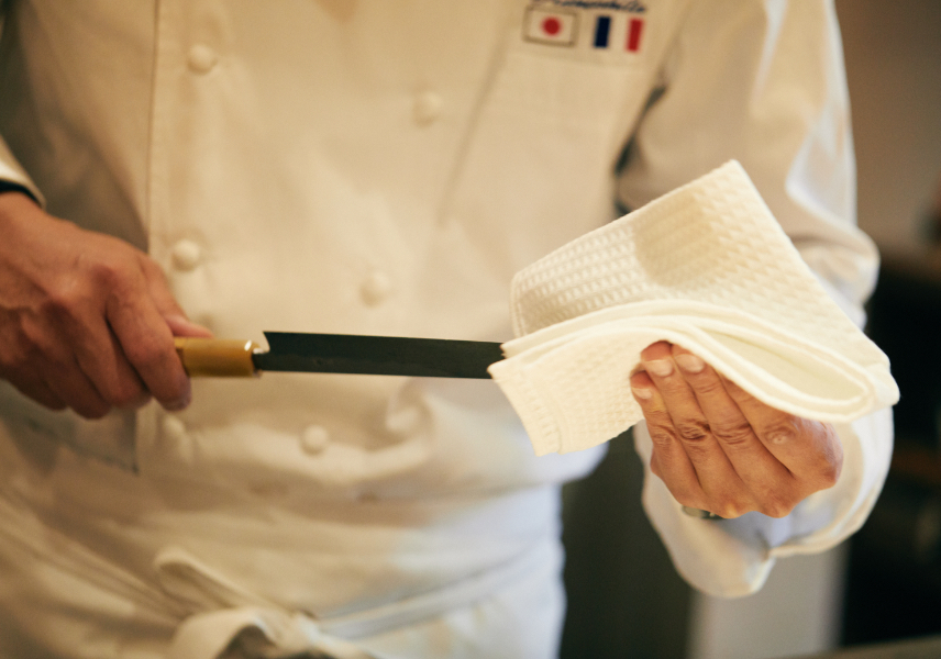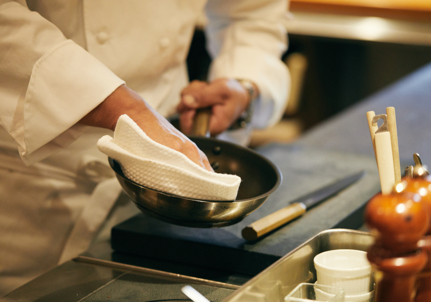 「包丁やフライパン、まな板と様々なものを拭くので匂いうつりが気になるのですが、このタオルは抗菌・防臭に優れているので匂いも一切せずとても衛生的なので、お客様に安心してお料理をお出しすることができるんです」
